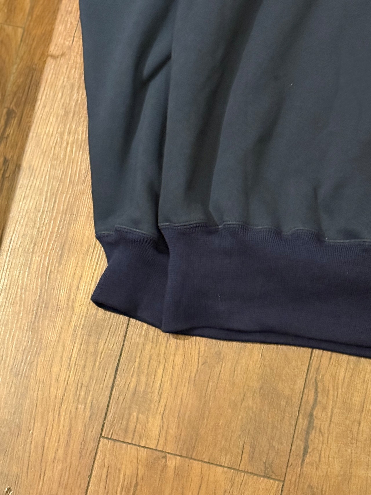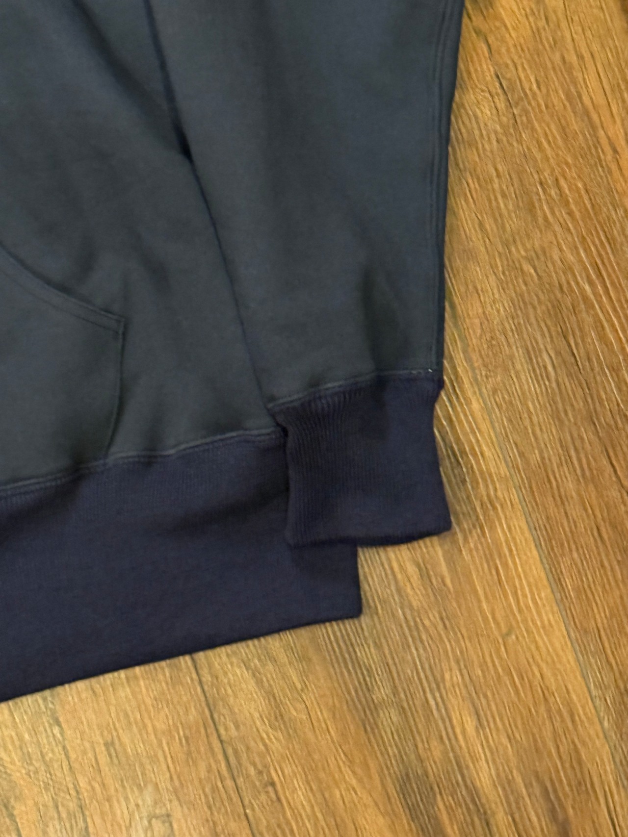所有するダブルフェイスの後付けパーカーを追求し、リブの編み込み、生地感、ウェイト、ラバープリントなど追求して製作した1着になります。