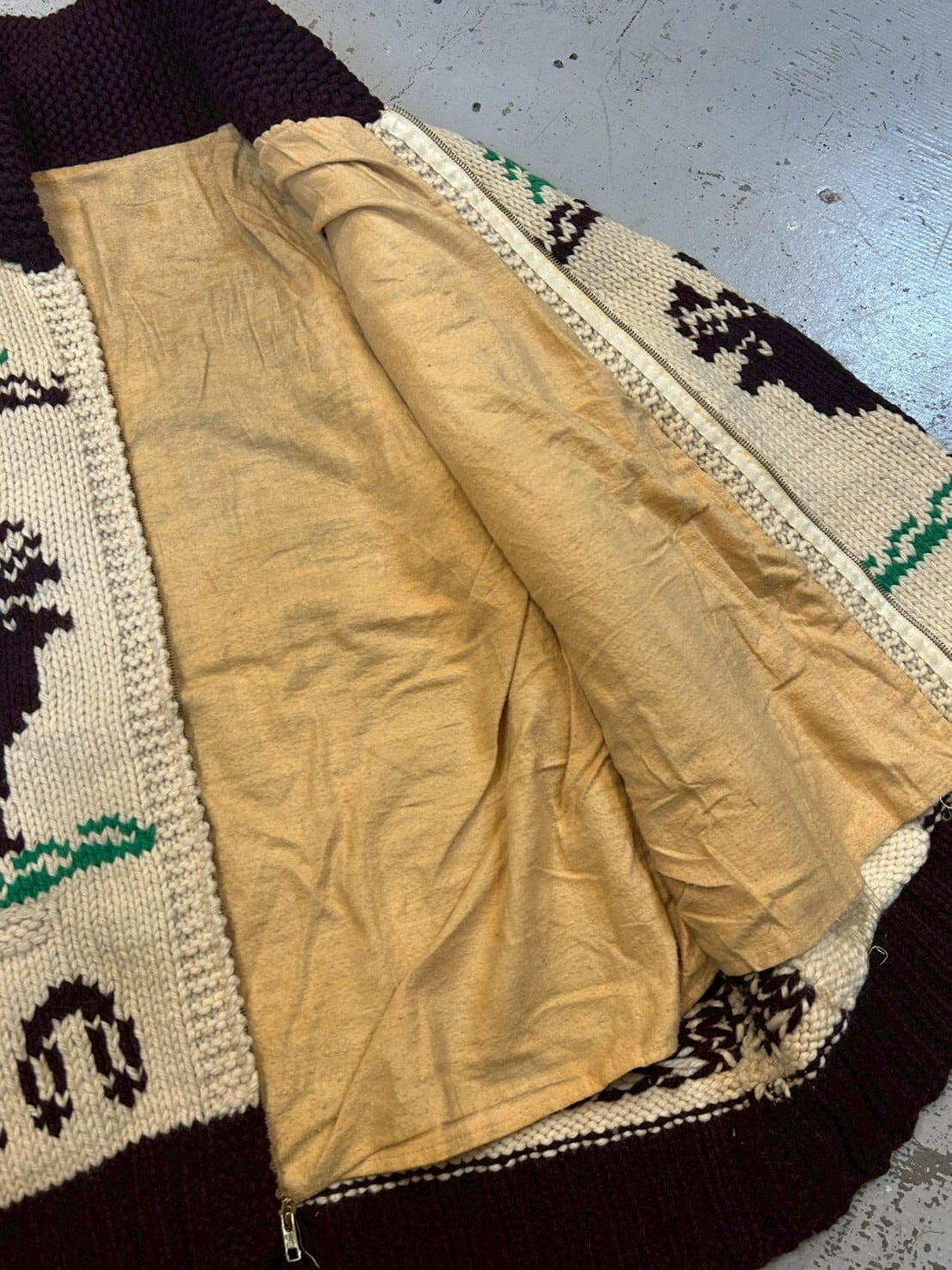 ヴィンテージのカウチンセーターらしい目の詰まったがっしりとした生地です。