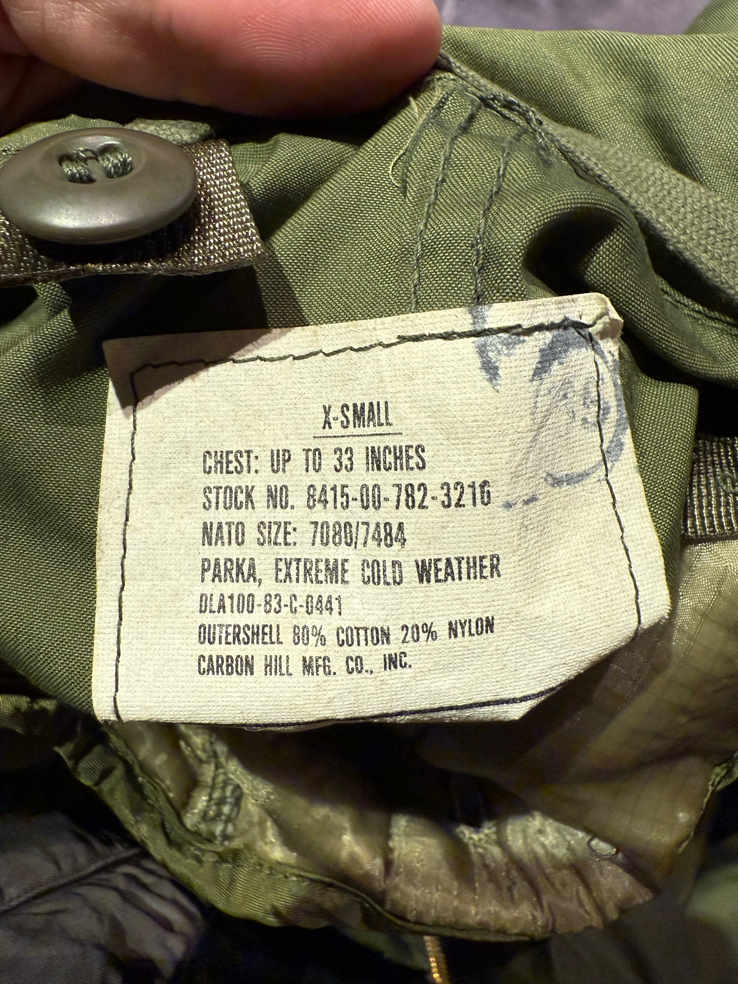 DEAD STOCK SIZE XS VINTAGE US ARMY M65 FISHTAIL COAT FULL SET