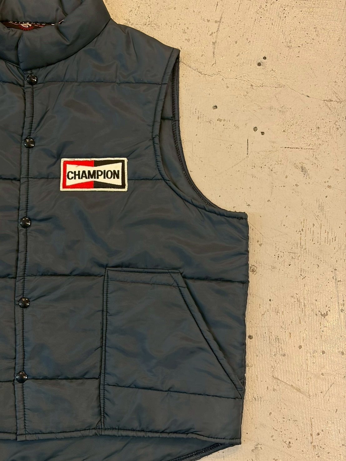 人気の高いCHAMPION PLUGのワッペンがつくベストです。