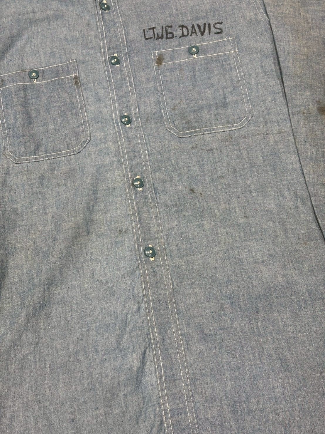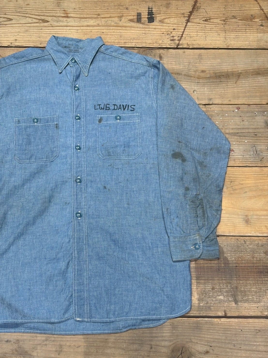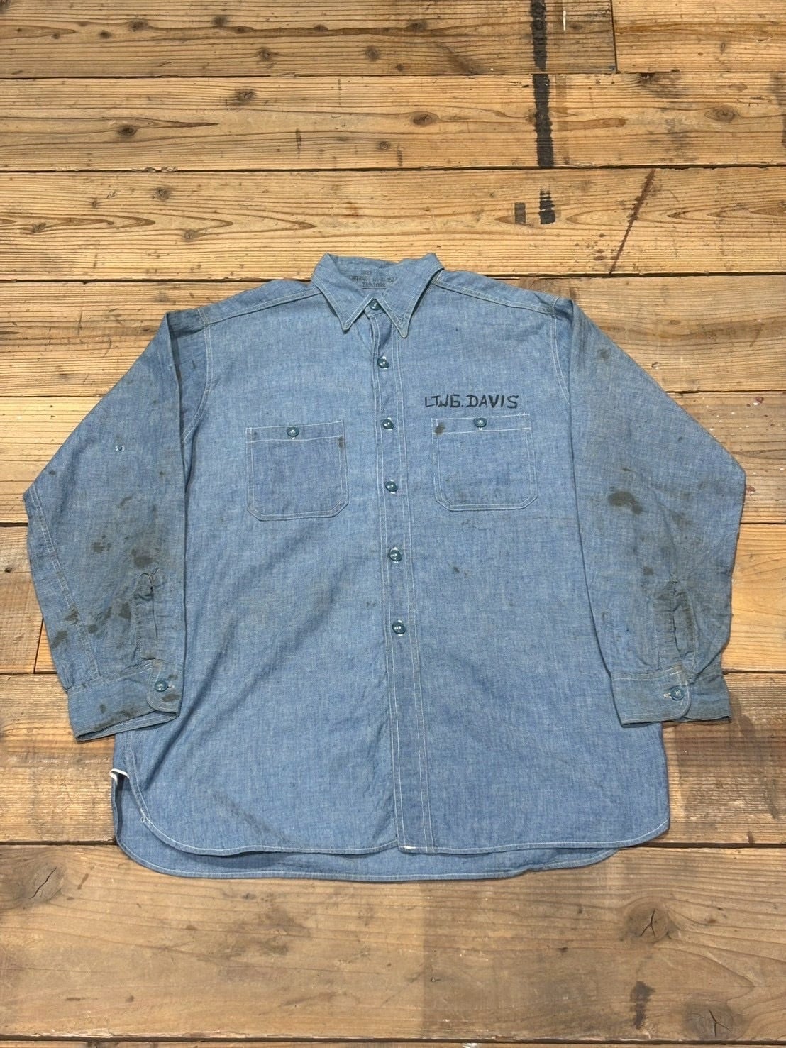 VINTAGE 40's U.S.NAVY CHAMBRAY SHIRT マチ付き