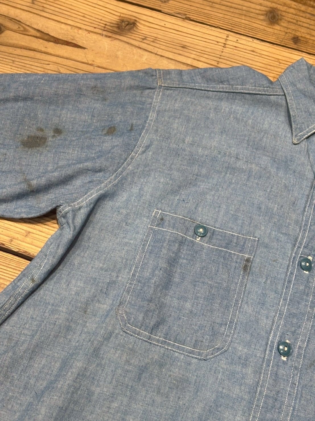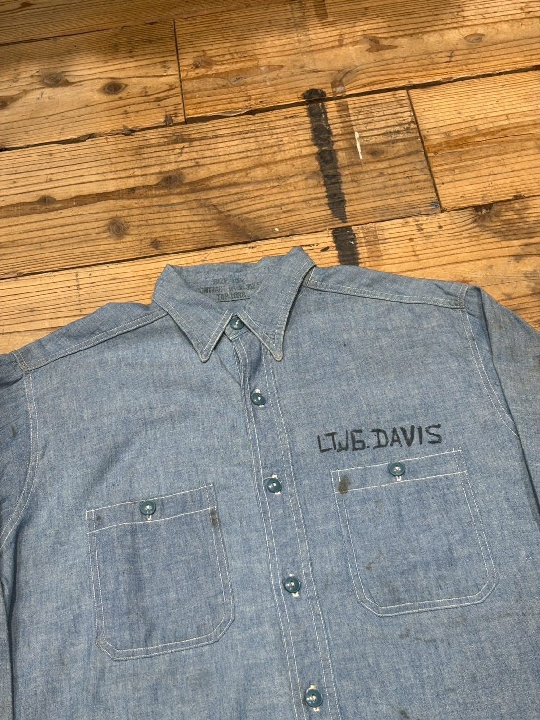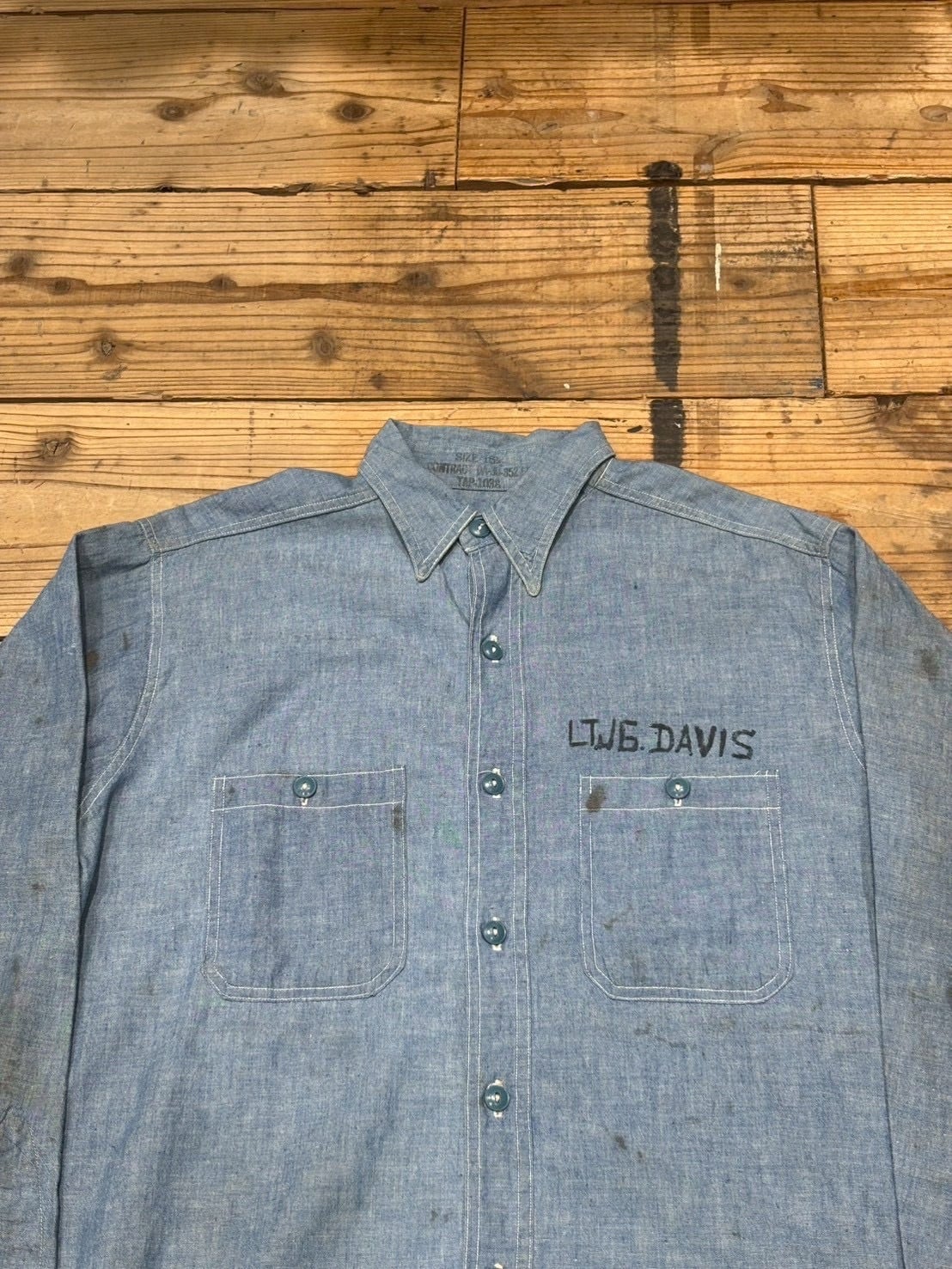 VINTAGE 40's U.S.NAVY CHAMBRAY SHIRT マチ付き