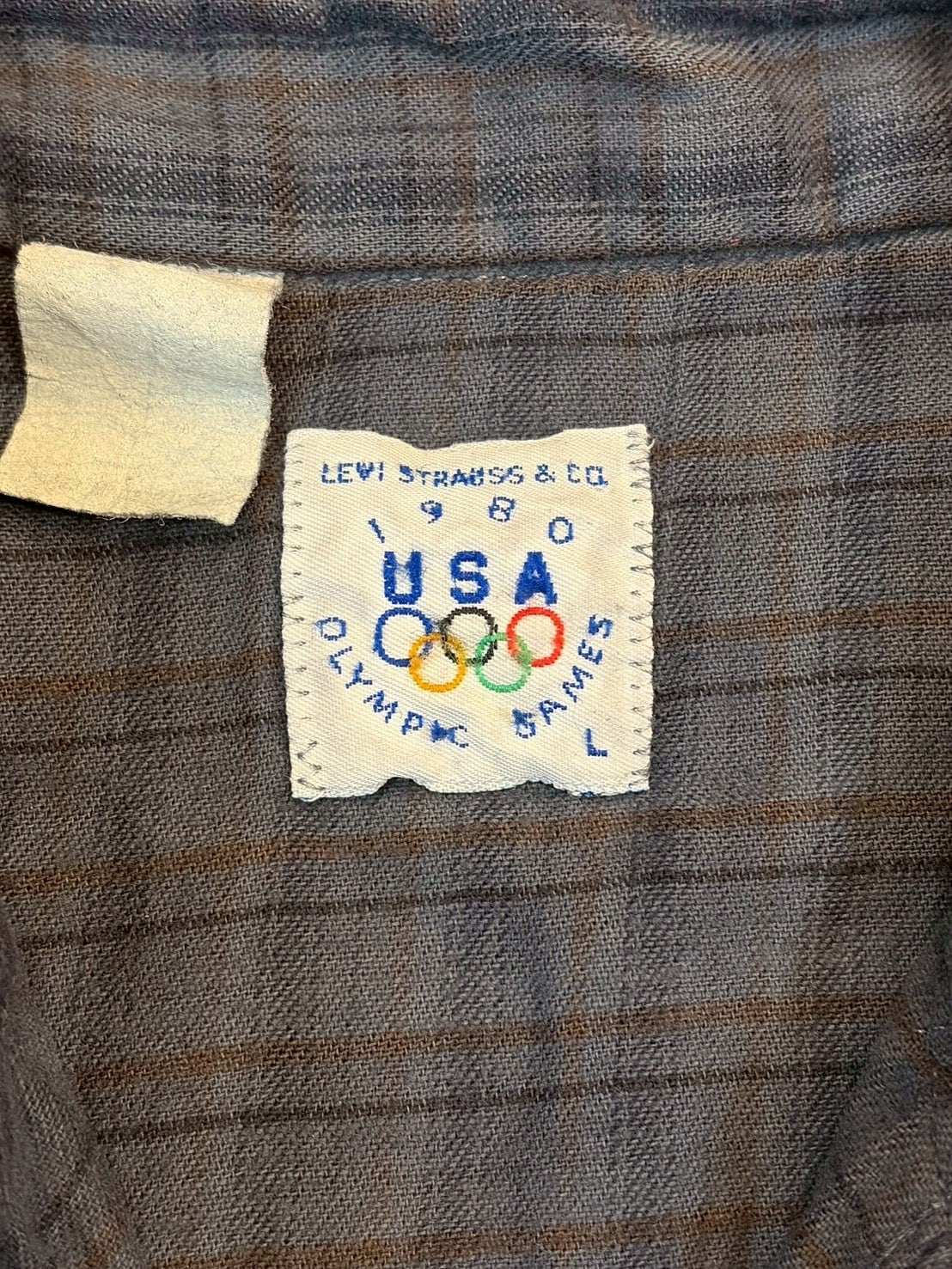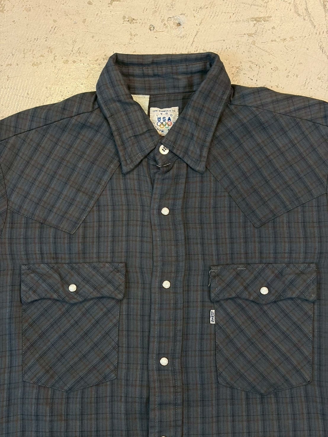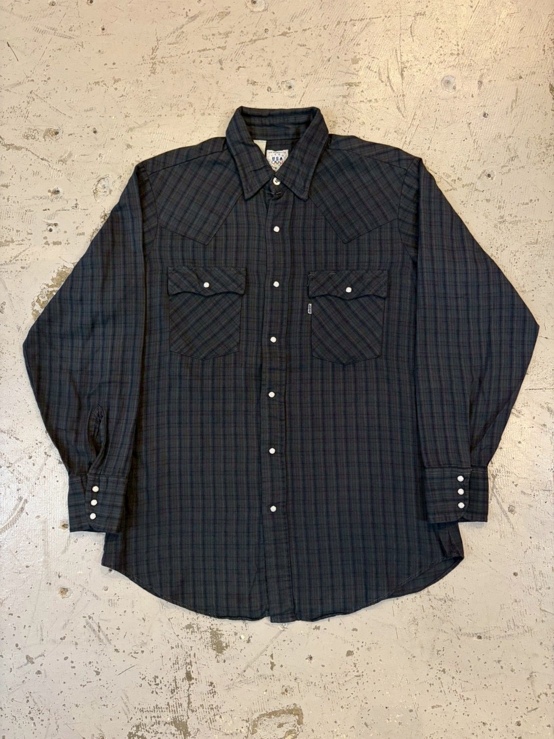 オリンピックのロゴが入るタグも特徴の使いやすいカラーのリーバイスのウエスタンチェックシャツです。
