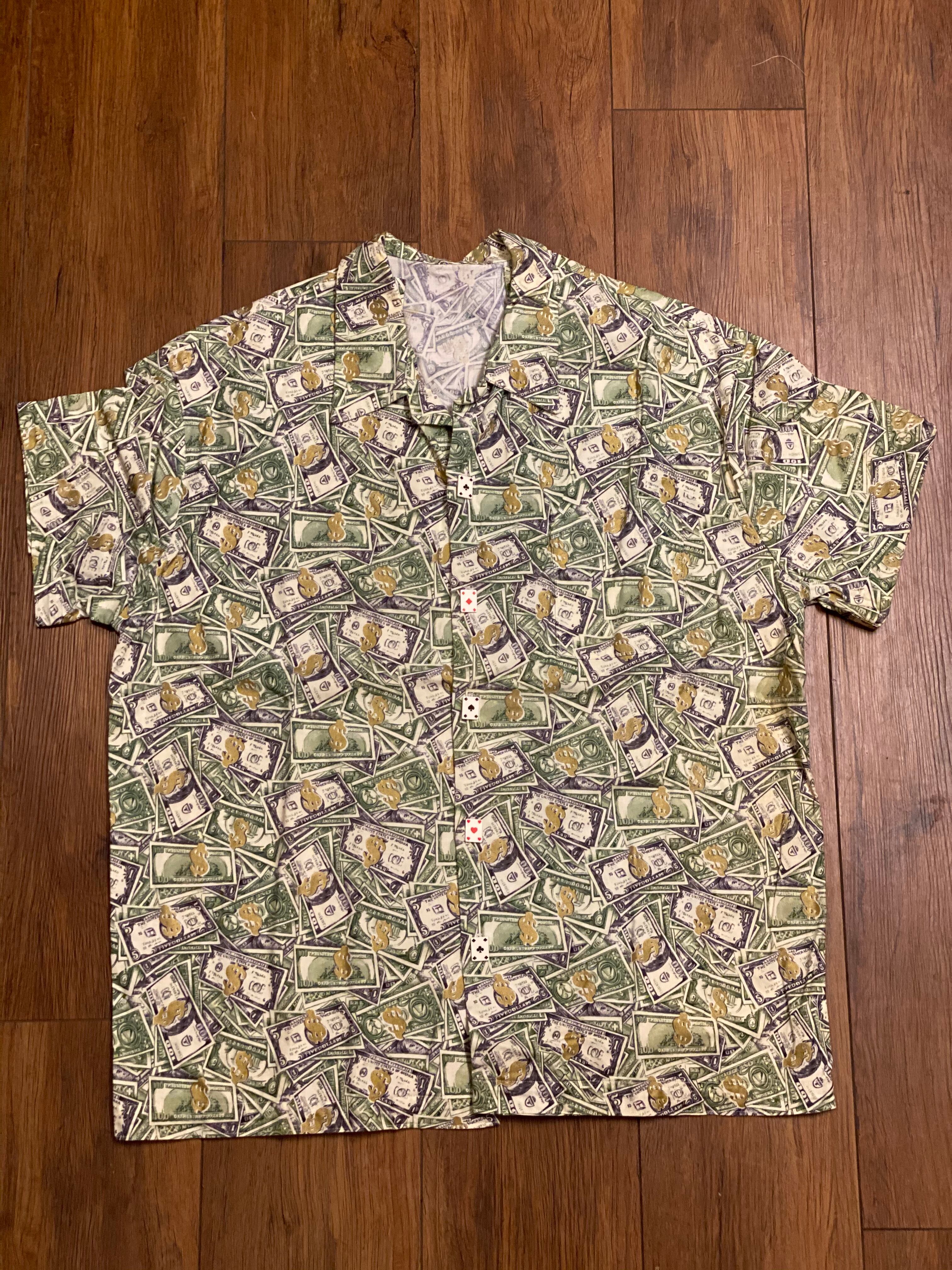 $の総柄です。ボタンがトランプボタンとなっています。ディテール、コンディションも良いです。コットンなので、着やすいかと思います。