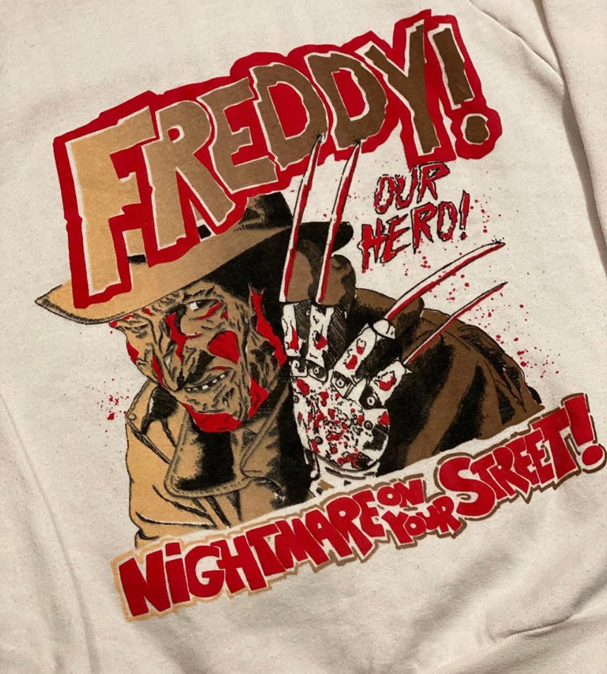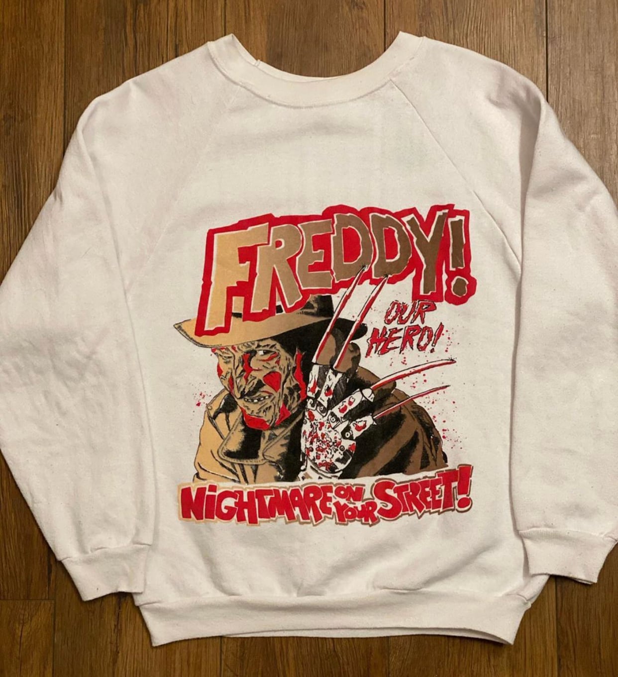 80’s〜のホラームービー、エルム街の悪夢物になります。フレディのインパクトが大なスウェットです。