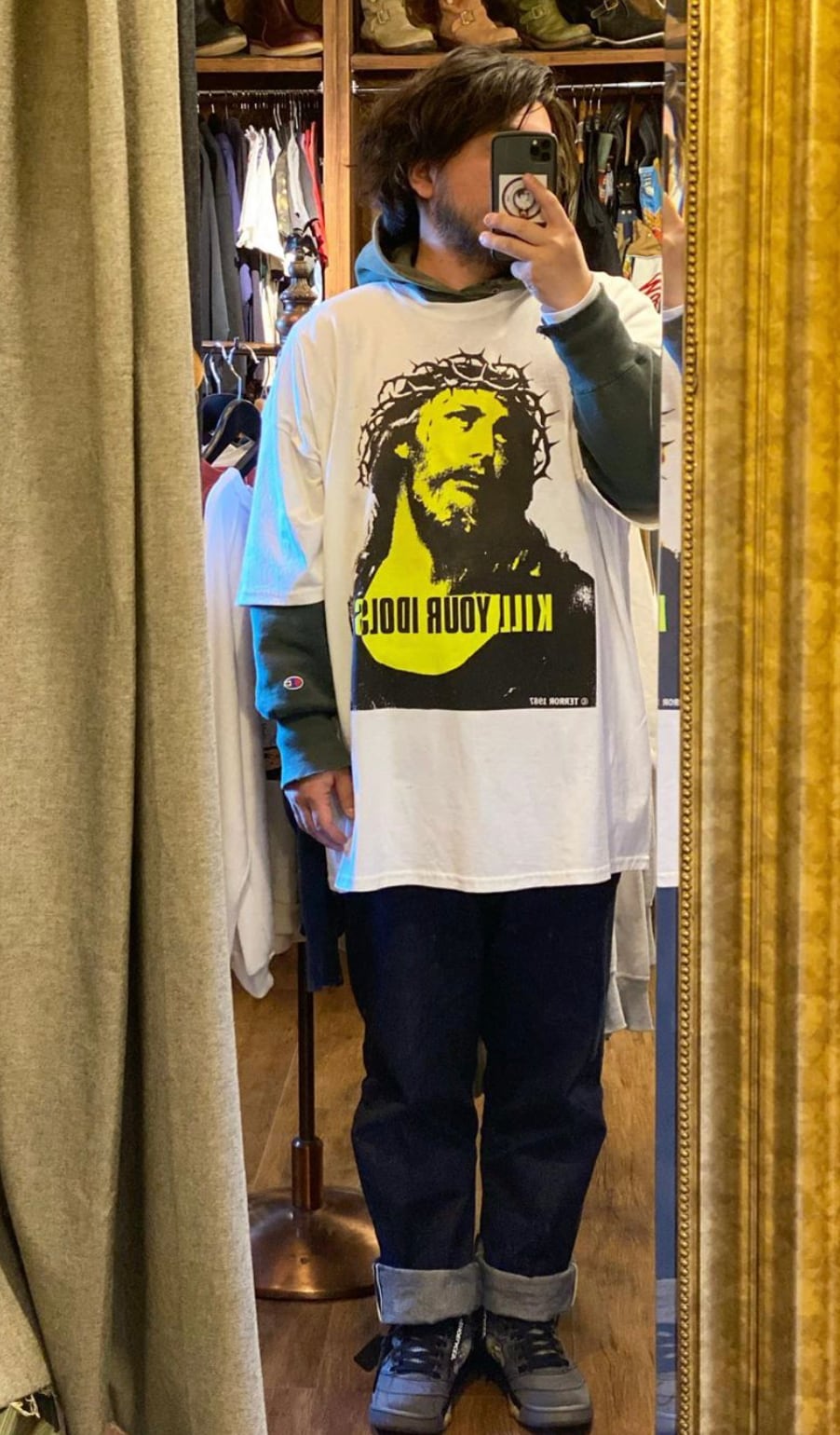 KILL YOUR IDOL TERROR シリーズ。あえて大きめのサイズで!パーカーの上などにも。お好きな方は是非!