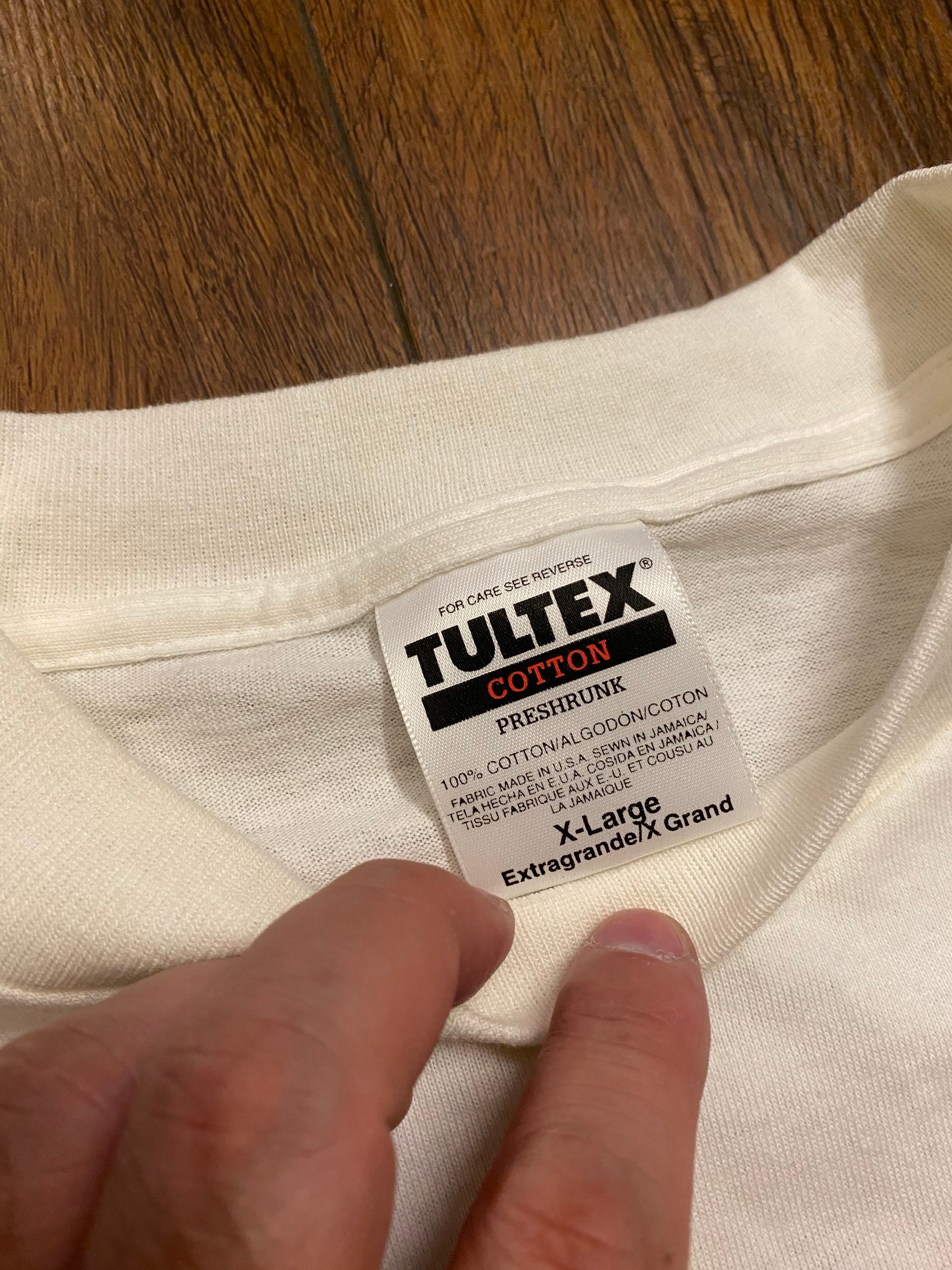 背面に入る参加バンドが豪華です。袋入りでは無いですが、デッドストックだと思います。洗濯後にサイズ縮みがあると思います。