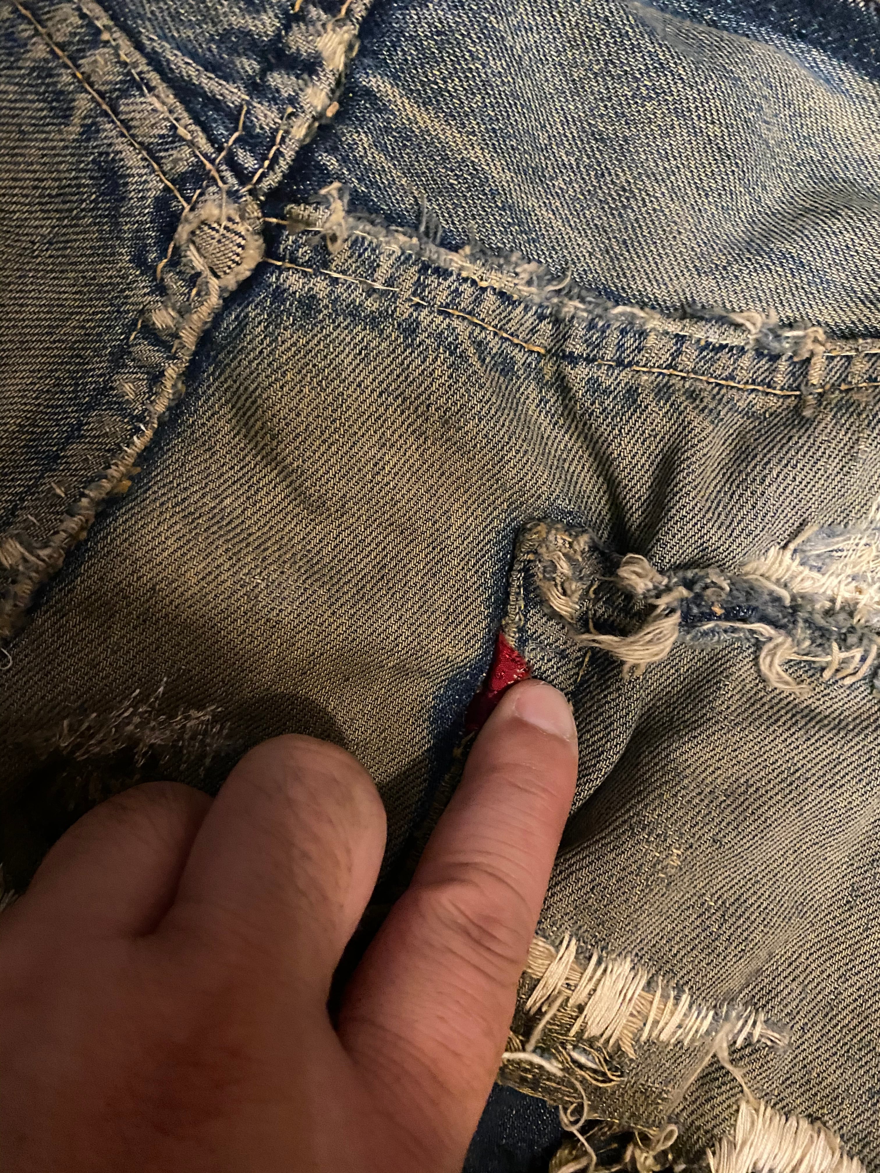 正にビンテージならではの一本です。多数のリペアがありますが、リペアされていますので、このままご着用いただけます。