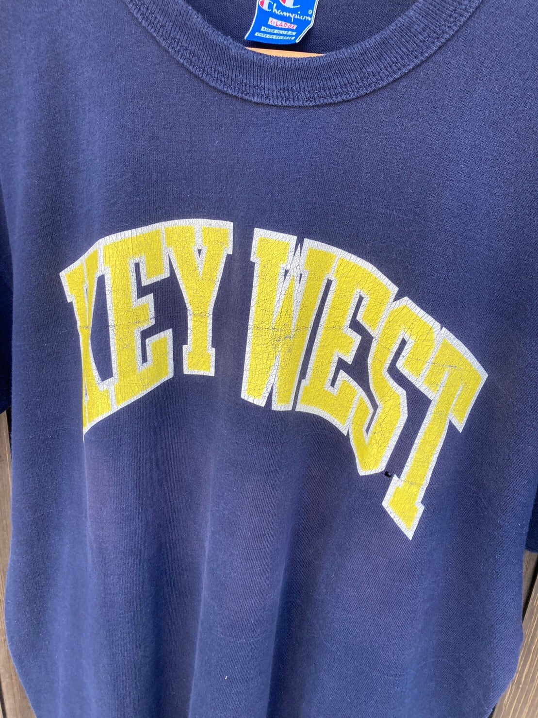 ネイビーボディーにイエローカラーの掠れたプリントが格好良く雰囲気抜群です。