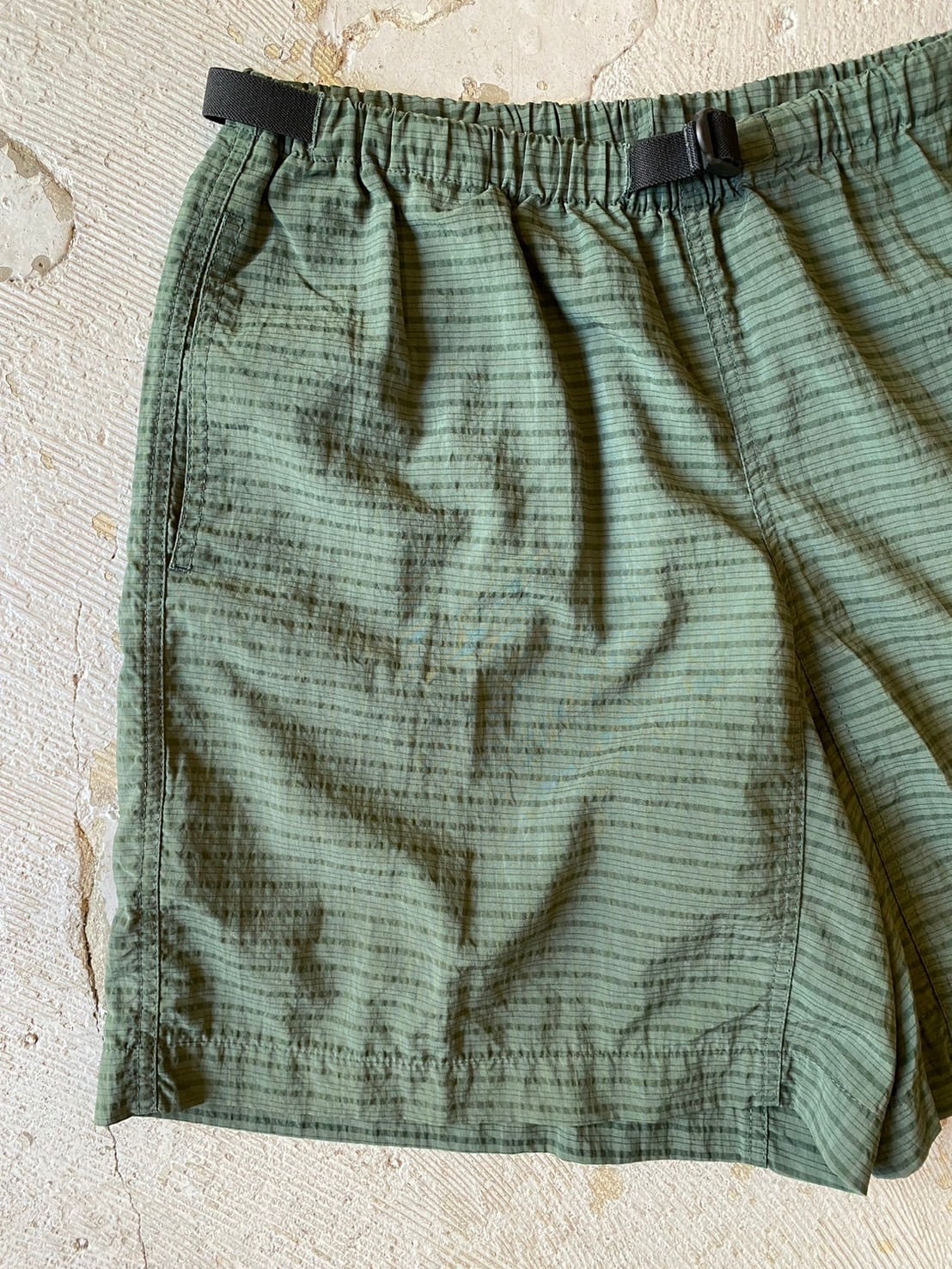 ウエストはベルトで調整可能、丈も短すぎず着用しやすいサイズ感です。